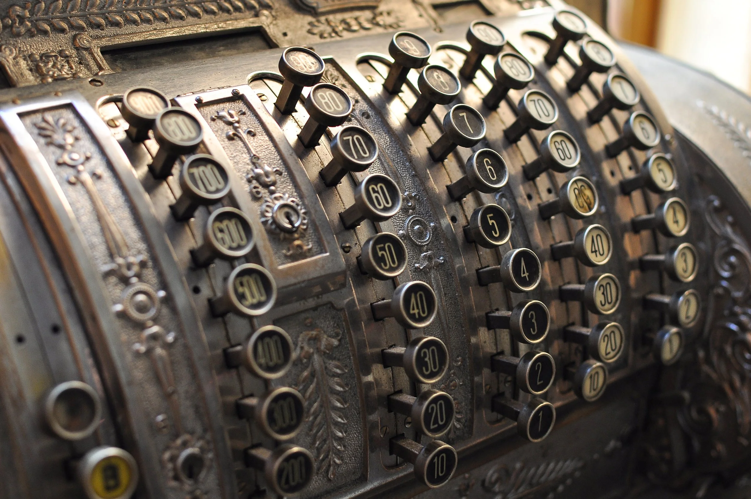 De tidligere apparatene var helt mekanisk, uten kvitteringer. Den ansatte ble pålagt å ringe opp hver transaksjon i registeret, og når knappen for totalen ble presset, åpnet skuffen seg og en bjelle ville ringe, varsle sjefen om et salg fant sted. Disse originale maskinene var ikke noe annet enn enkle tellemaskiner.